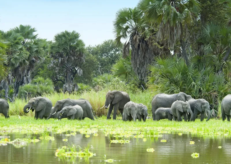 The park is home to huge herds of elephants, prides of lions, giraffes, zebras, buffalo, wildebeest, and rare species such as the African wild dog. The Rufiji River supports thousands of hippos and crocodiles, offering some of the most dramatic river-based wildlife viewing in Africa.